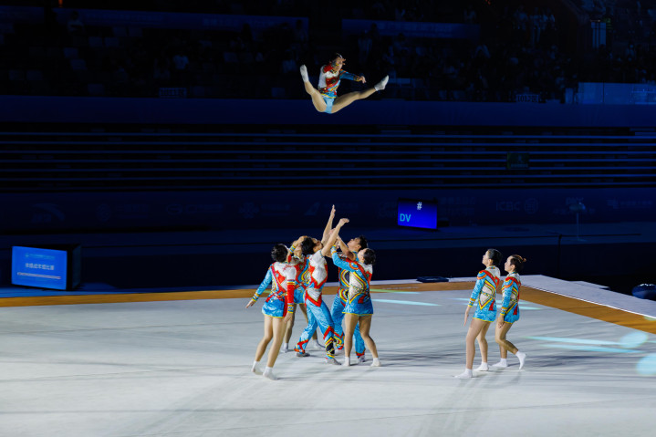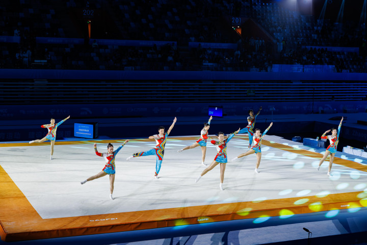 近日,中华人民共和国第十五届运动会体操成年组赛事在广东肇庆拉开帷幕。11月12日晚,在体操赛男团决赛结束之后,广州应用科技学院(以下简称“广应科”)应邀进入赛场进行表演,来自该校健美操队8名队员演绎的有氧舞蹈《七彩跃动》在十五运会赛场亮相。演出也通过中央电视台“央视频”现场直播,向全国观众展现了广应科学子的青春风采与大湾区青年的精神风貌。